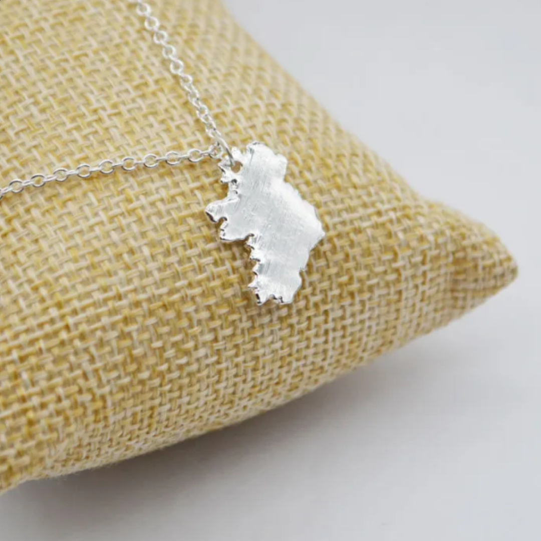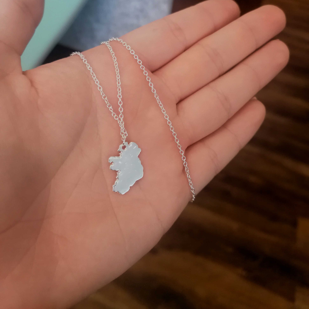 This silver-plated map of Ireland pendant necklace captures the essence of the Emerald Isle. Give the gift of Ireland to someone at home or a loved one abroad in need of a reminder of home.